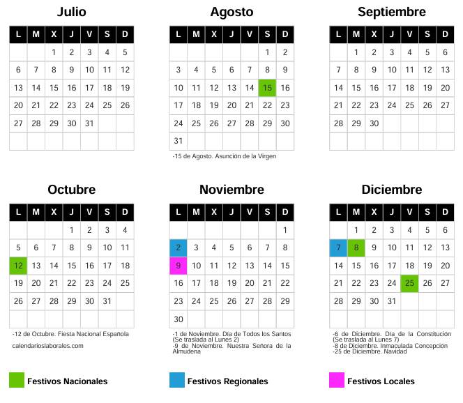• 2 de noviembre (lunes), traslado de Todos los Santos.